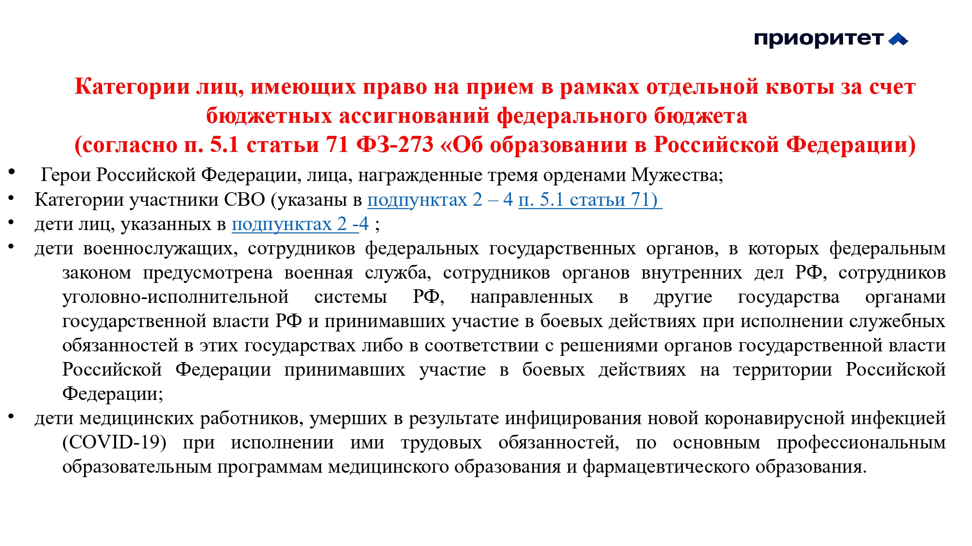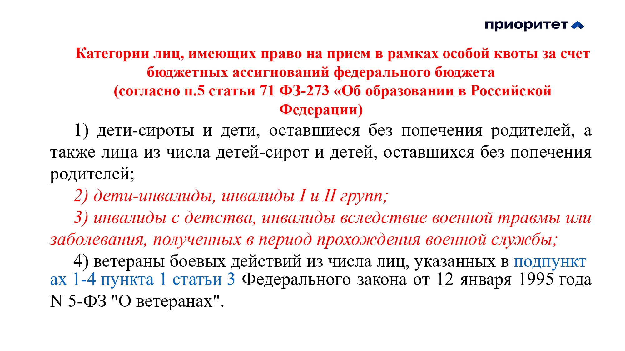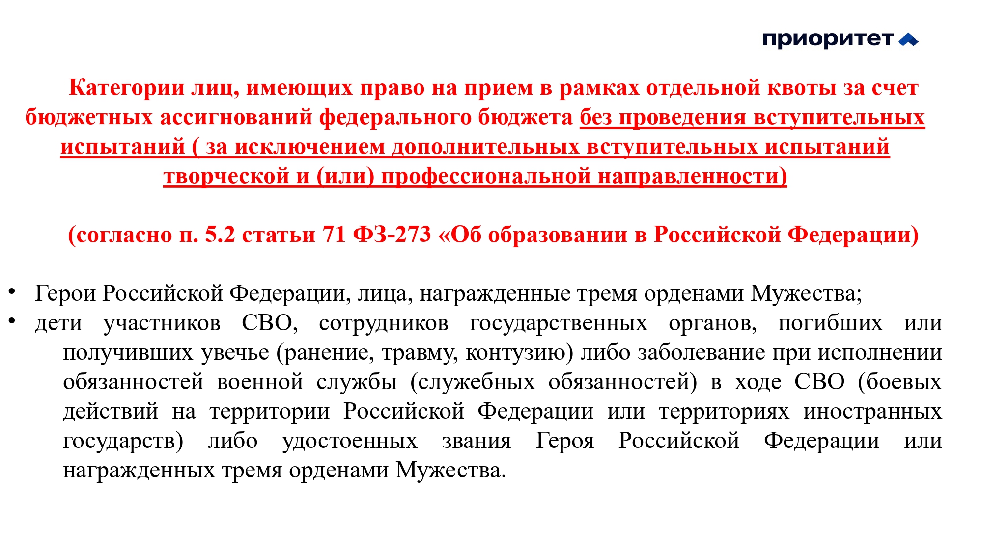 - Информация о предоставлении особых прав и особого преимущества по программам бакалавриата и программам специалитета