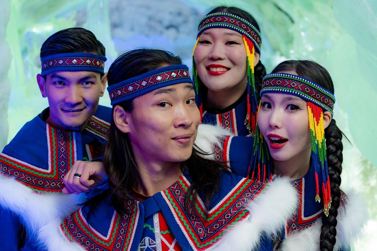 The ensemble's repertoire includes more than thirty dances of the peoples of the North. It features the dances of indigenous minorities living in the North-East of Siberia, Kamchatka, and Chukotka - Yakuts, Dolgans, Evens, Evenks, Yukaghirs, Chukchi, Koryaks, Itelmen, and others.