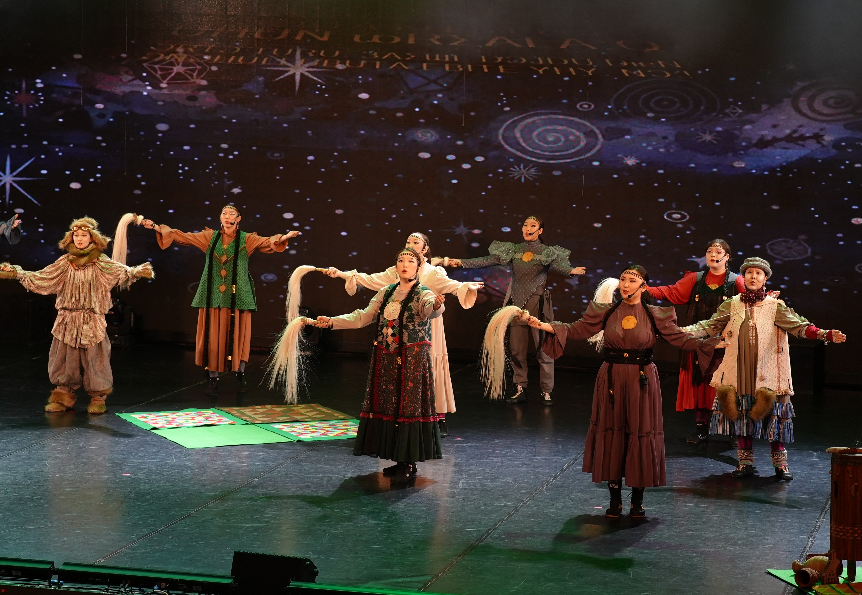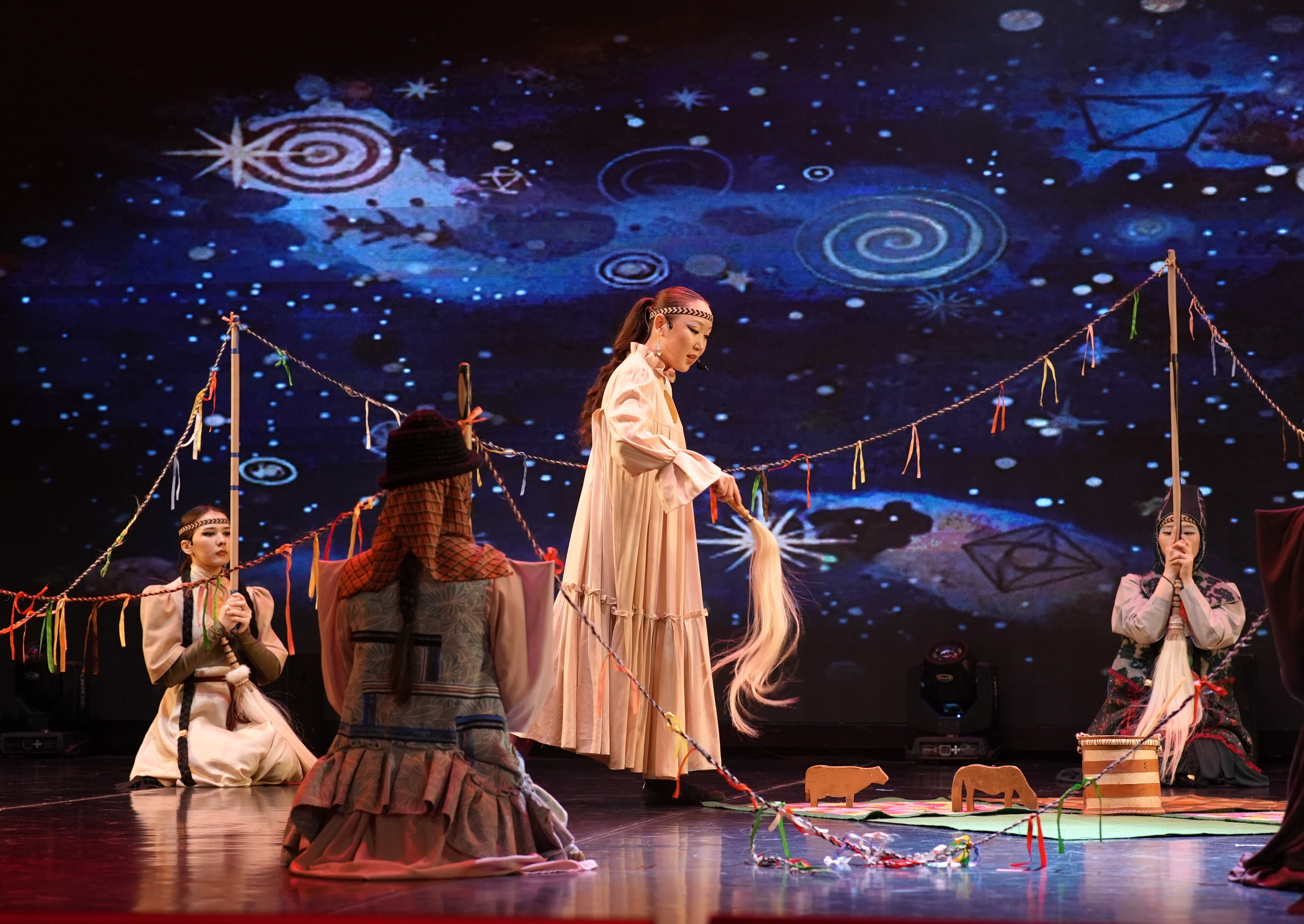 «Подготовка к медиаспектаклю шла полным ходом: от поиска идей и воплощения наших фантазий до выстраивания новых мизансцен с использованием экранов. Мы постоянно были в диалоге с художниками: обсуждали, как изобразить лошадь, как лучше передать печаль Дьырыбына Дьырылыатты…