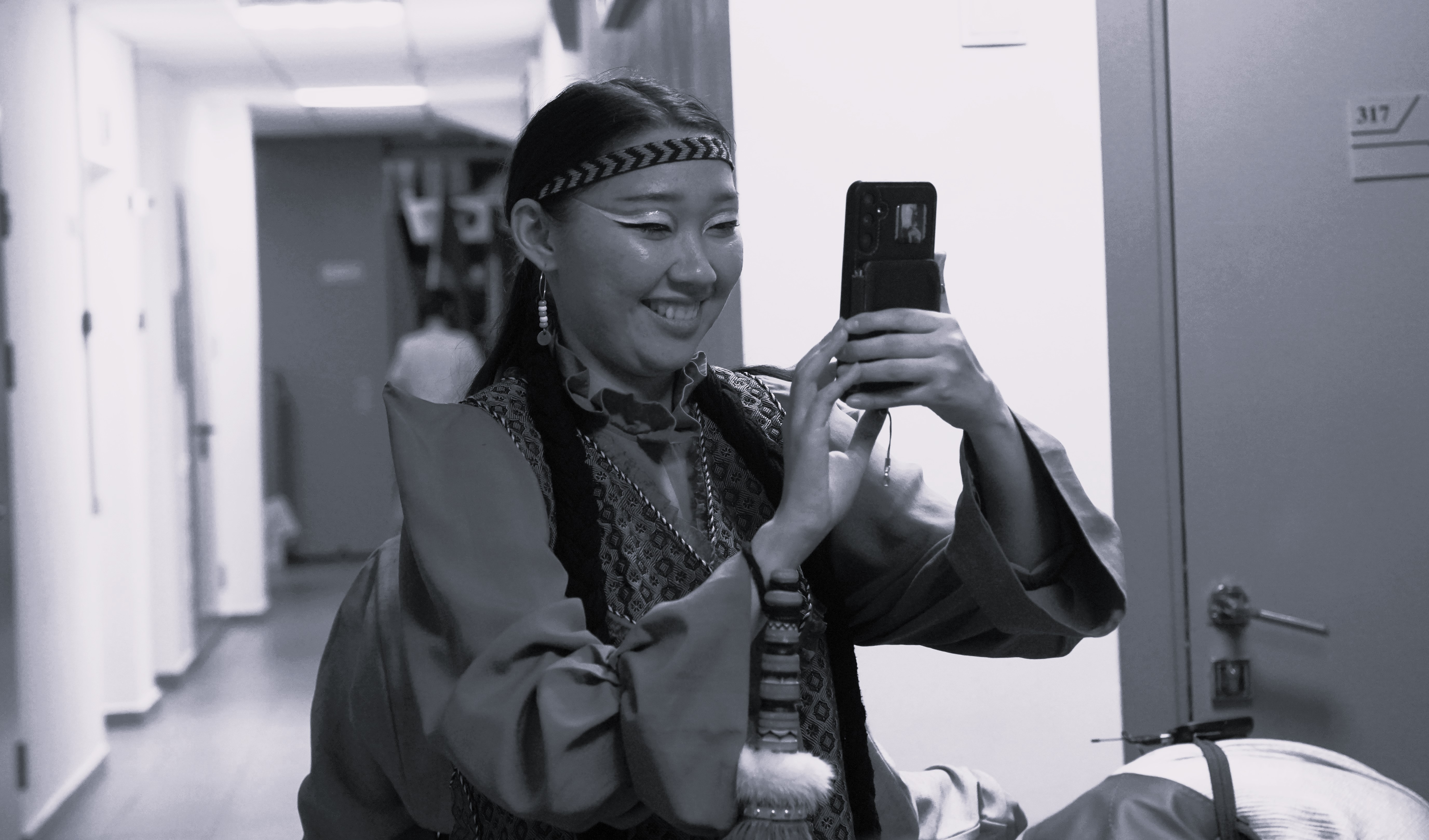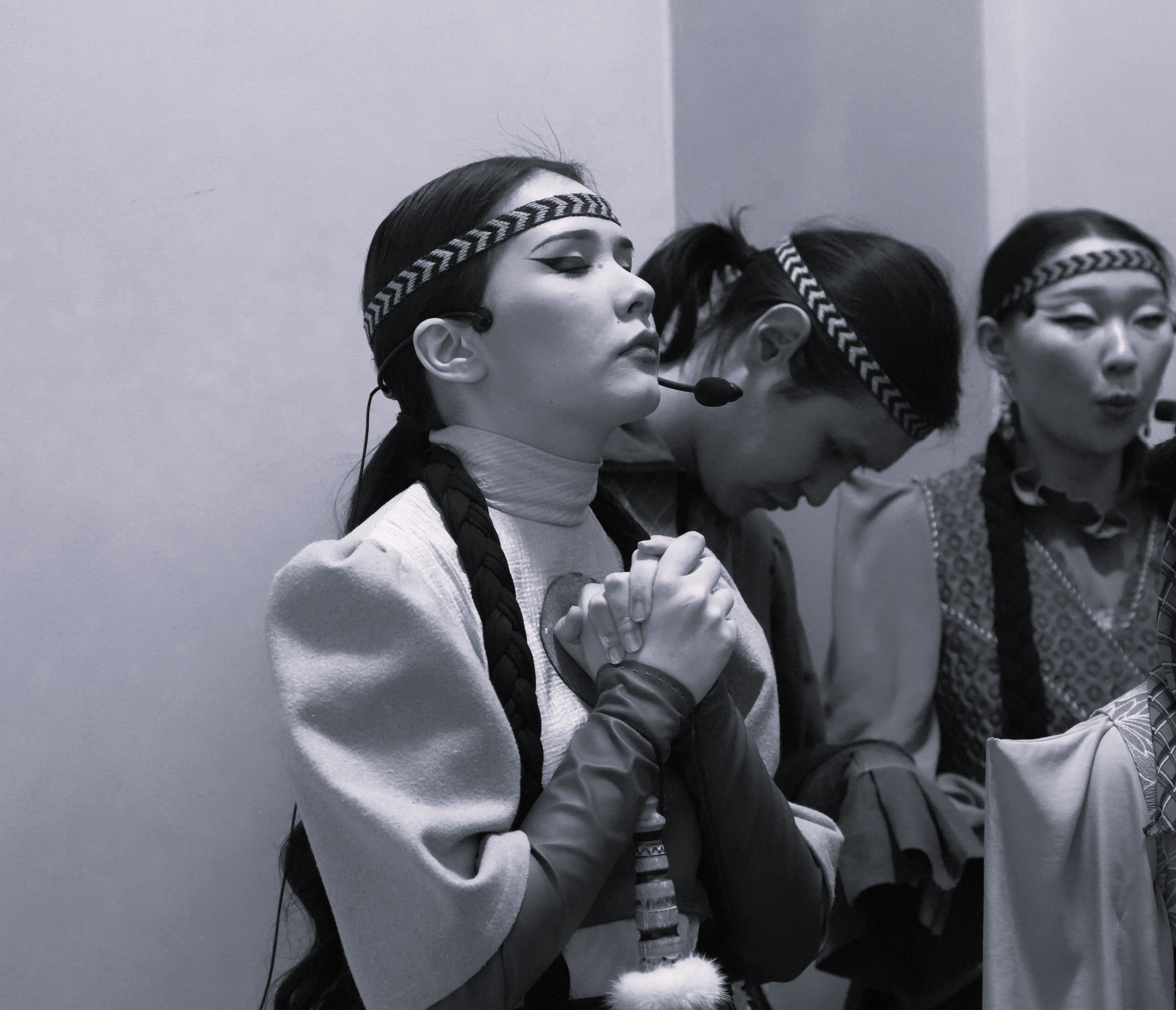 Конечно, перед выступлением всегда волнительно, но когда выходишь на сцену, страх исчезает. Ты оказываешься в совершенно ином мире - как в детстве играешь с друзьями в супергероев. Такой навык приходит со временем, ведь в начале пути страшно всем. Но сейчас спектакль „Лики Олонхо“ стал настолько родным, что бояться его невозможно, как и самого формата медиаспектакля.
