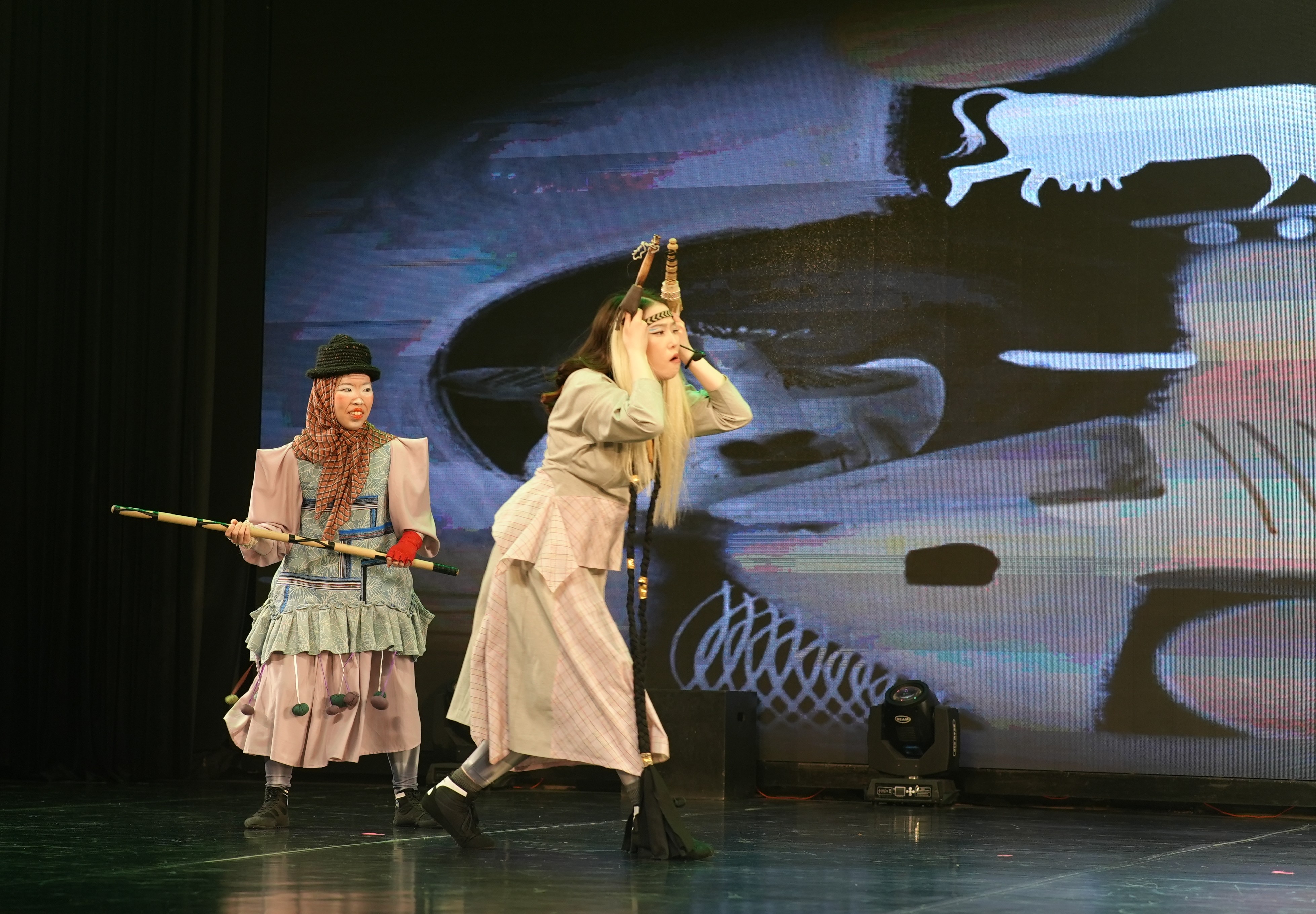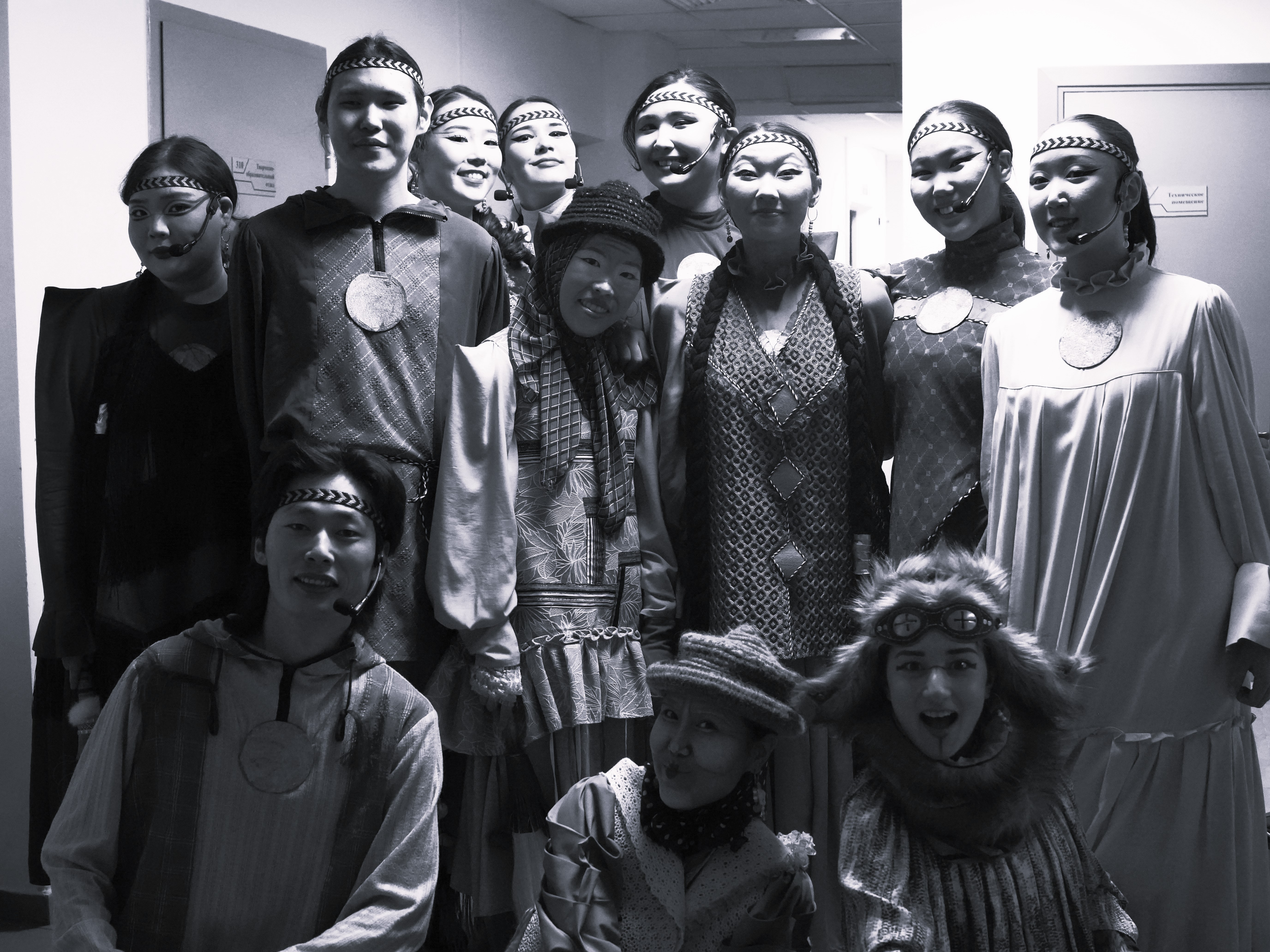 Над графическим наполнением, ставшим основой цифрового мира, работала Туйаара Шапошникова, а за создание уникальных образов и костюмов отвечала Дора Айкуо Тихонова. Важнейшей особенностью проекта стало то, что на каждом этапе — от первых набросков графики до воплощения сложнейших костюмов — бок о бок с мастерами работали студенты кафедры АГУИККИ. Этот живой преемственный процесс позволил объединить академическую школу с дерзким поиском новых форм.