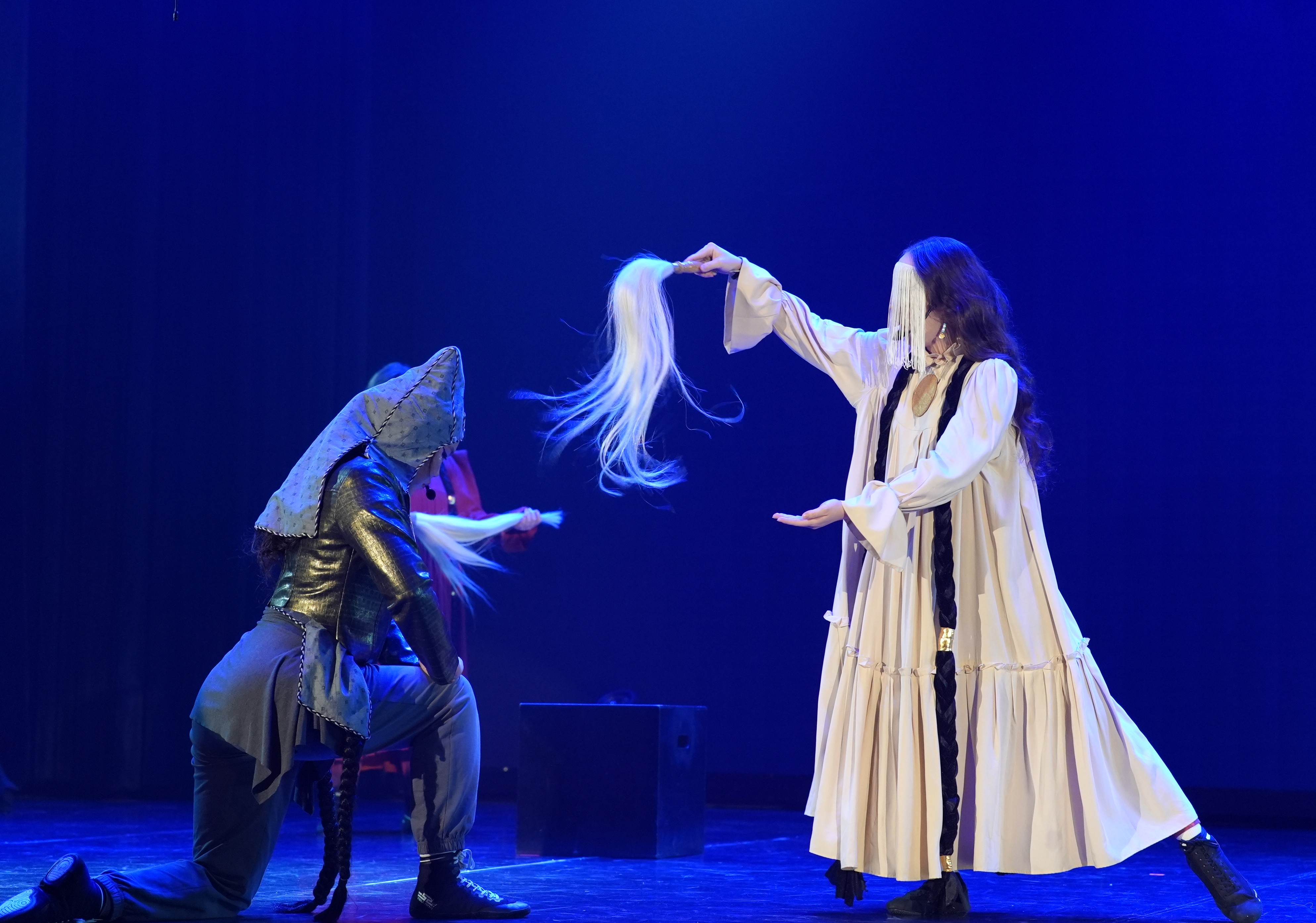 Статус вуза креативных индустрий подтверждается здесь каждым кадром и каждым движением на сцене. Спектакль стал результатом сложнейшей кросс-функциональной коллаборации: здесь будущие актеры (выпускники курса театрального искусства) работают в единой связке с художниками кафедры живописи и графики, а классическая сценография уступает место интерактивным медиарешениям. Это и есть живой пример того, как современное образование трансформирует культуру в инновационный продукт.
